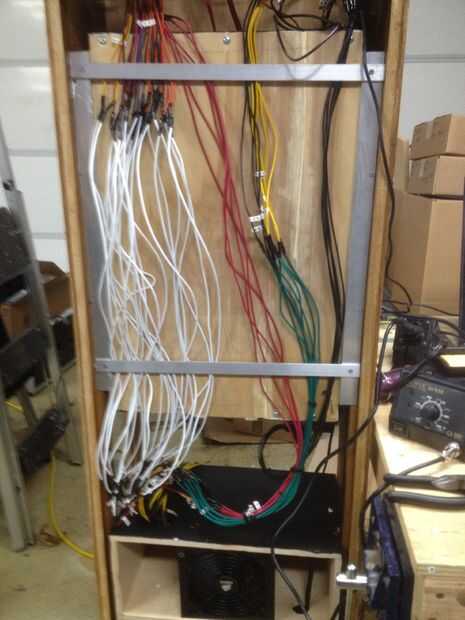 7. Usé tres barras de aluminio de la pulgada ¾ para aplanar los alambres contra la parte trasera de la madera que sujeta los discos duros. (solamente dos se muestran en la foto)