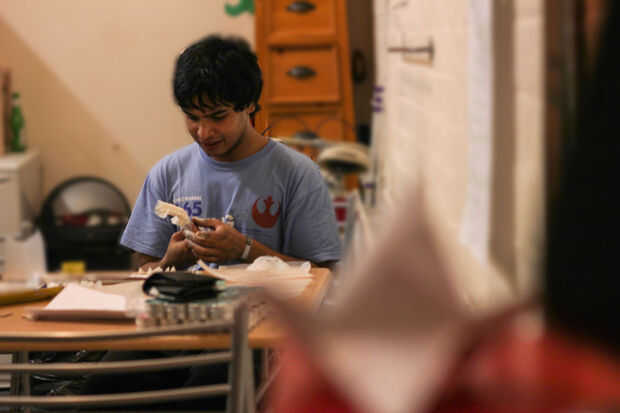 Aplique pegamento en todas las superficies de la manija y luego triángulos en cada superficie. Esta etapa es muy importante que usted tendrá que decidir cómo empinadas que desea el objeto (basándose en qué tan alto se sientan los triángulos traseros)