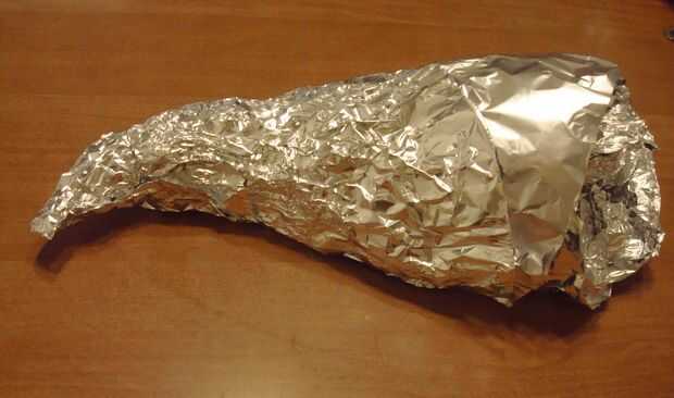 Llene el cono con papel de aluminio por lo que el cono es sólido. Doblar ligeramente el extremo del cono por lo que parece un cuerno de la abundancia.