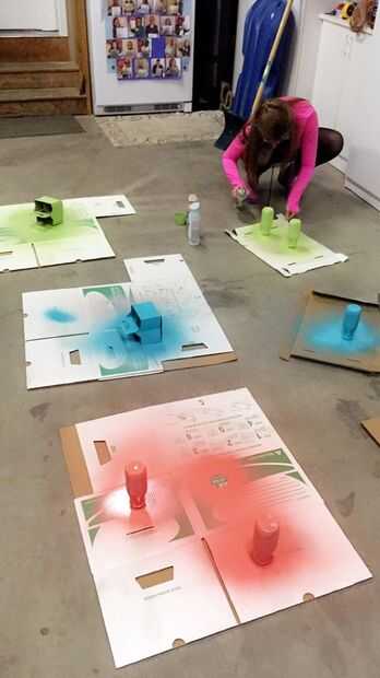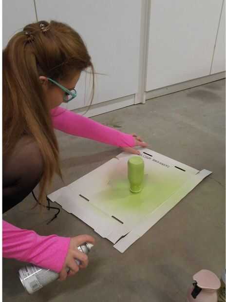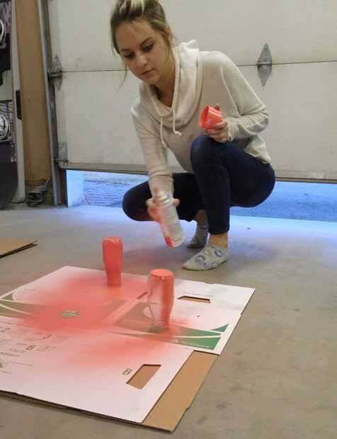• Ponga botellas boca abajo sobre la cartulina, espaciados lo suficientemente lejos para asegurar que no sea Cruz-aerosol de diferentes colores (a menos que sea el look preferido). Tres a cinco pies debe ser suficientes