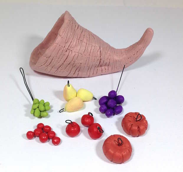 Sujete cada fruta por el vástago con alicates y pintura. La cornucopia de la pintura y todo lo deje secar