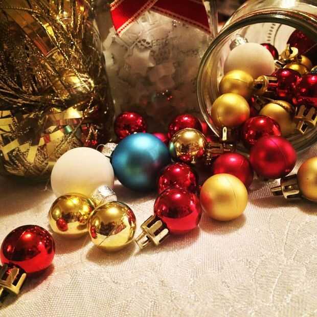 Ninguna tabla de banquete festivo es completa sin una pieza central de Navidad y este año usted puede realmente wow, tu familia y amigos con este eje estilo vintage hermoso hecho con sobrantes de la Navidad adornos y un par de frascos de vidrio.