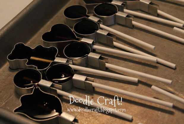 Después de que su sabor y color se mezclan rápidamente en, sostenga la bandeja y deje verter líquido en los moldes.  Tienes que trabajar rápido antes de se refresca apagado.  Llenar los moldes hasta la cima!