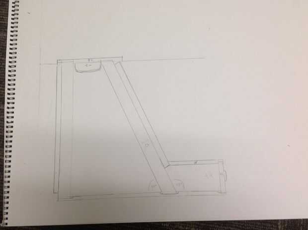 El primer lugar para comenzar es con un dibujo de lo que desea su proyecto final para ver como. Redacté una vista lateral de mi centro arcade. Me pareció que el ángulo que quería utilizar para la pantalla un 112,5 grados para ver la pantalla cómodamente de pie o sentarse en una mesa. Esto puede variar dependiendo de la persona, y tal vez tengamos que cambiar que aún un poco para obtener mejores resultados.