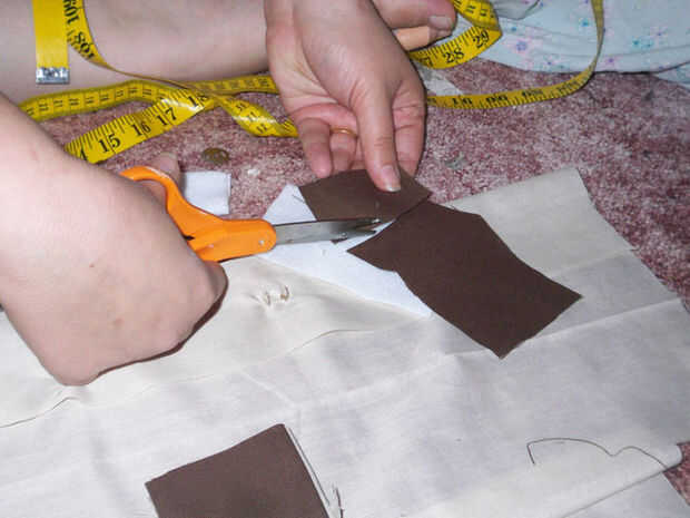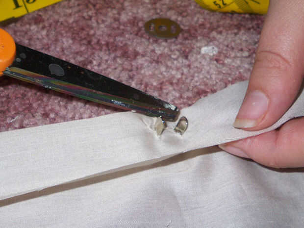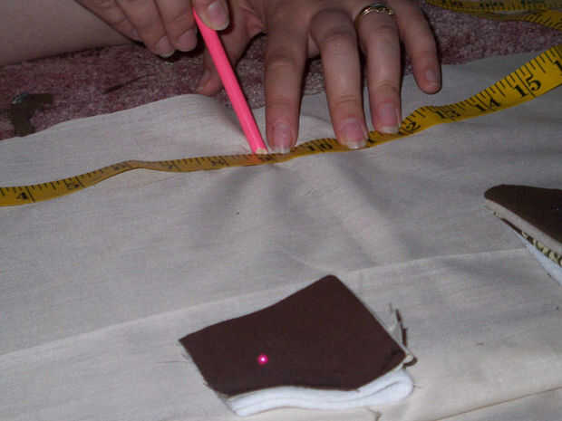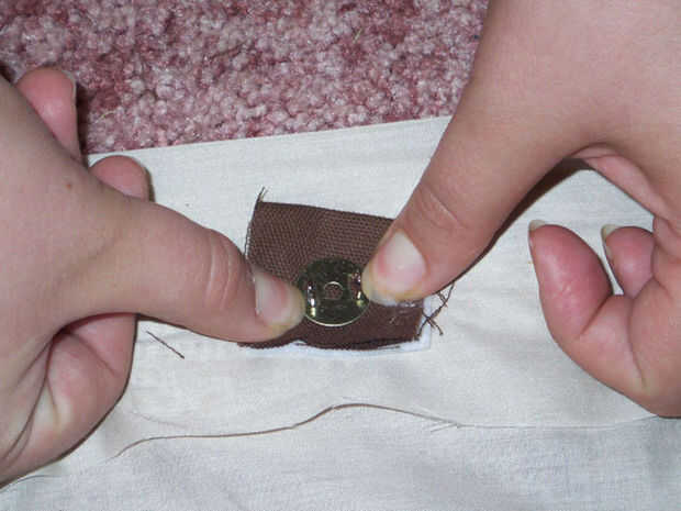 Siga las instrucciones en el embalaje de su cierre magnético a insertar la hebilla en estas marcas. Donde las instrucciones dicen utilizar cartón para estabilizar el corchete, usar pedazos del paño grueso y suave y material de los rincones que se corte. (Ver fotos paso a paso fotos de mi envoltorio)