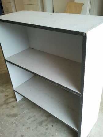 Así que, aquí está el comienzo de mi "obra maestra"! Su librería tablero partícula sólida. También puede usar una mesa o aparador antiguo con el mismo fin!