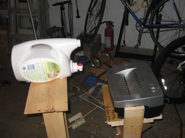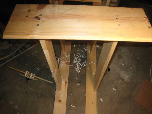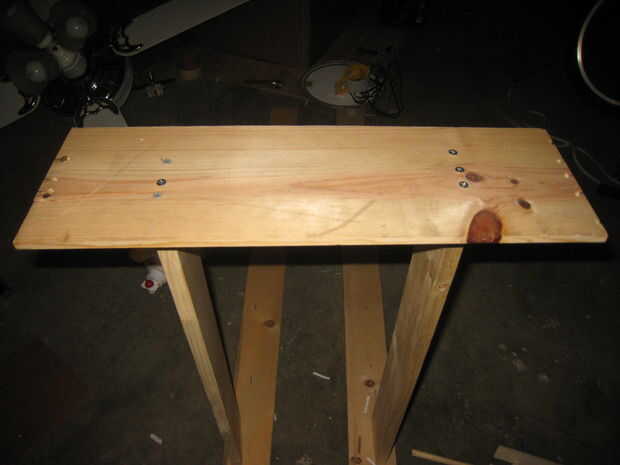 La más fina pieza de madera a un tamaño un poco más largo que el ancho de su base y un poco más delgado que su tanque de agua, para que salga cualquier líquido puede ir sobre el borde de corte. cada borde. Corté mis tablas 1 x 4 un poco larga, pero aquí de la altura ha cortado: 2 pies (61cm) que resultó para ser un poco demasiado alto, por lo que el agua que salió salpicado demasiado. Tan tuyo cortar más corto. Probablemente alrededor de 1,5 pies (45 cm) puede ser diferente para usted. Atornille las tablas en la base, cerca de 1,5 pies (45 cm) del borde delantero de la base (final de la trituradora de papel) que quiere dejar una buena cantidad de espacio en el medio, como habrá otra sección en el medio. Atornille el tablero más fino en los dos tableros que se pega para arriba de la base. Básicamente, usted quiere hacer una tabla. Para el tanque de agua. En la base.