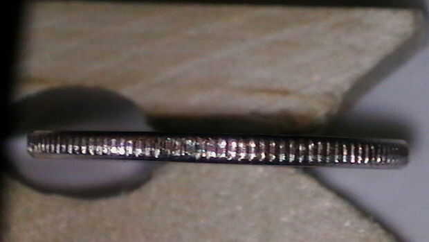 Observe la imagen de la bola del punto de pluma, el lápiz y el borde de la moneda de diez centavos.