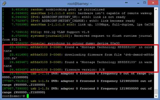 Si presenta algún error que no encuentra un archivo de firmware, necesitamos copiar los archivos de firmware para el sintonizador y copia/Extracto de lo a la carpeta/lib/firmware /.