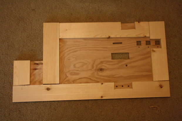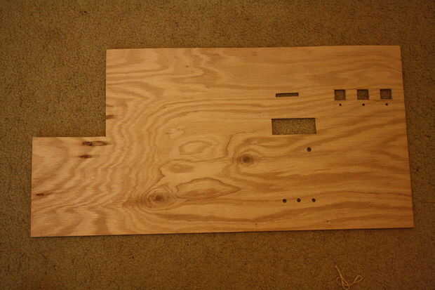 1. para la parte superior de la base del centro de prototipos corte una hoja de 2 x 1 pie de la madera contrachapada. La esquina superior izquierda se cortó hacia fuera para el soldador.