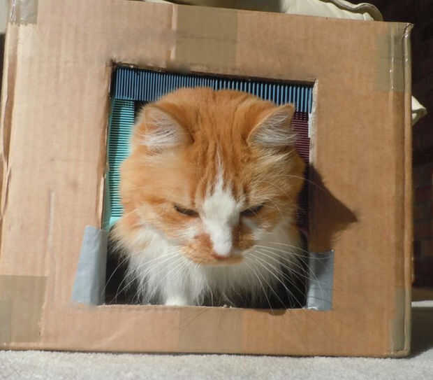 1. una caja rectangular, de pequeña y medianas según el tamaño de su gato.