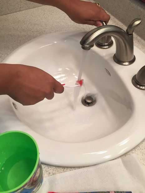 Tengo problemas con mi niño al enseñarle a cuidar de sus dientes. Después del cepillado, ella siempre lo deja en la encimera del fregadero o en el vidrio o el peor, la soltó en el piso del baño. Que el desorden y puede ensuciar el cepillo de dientes.