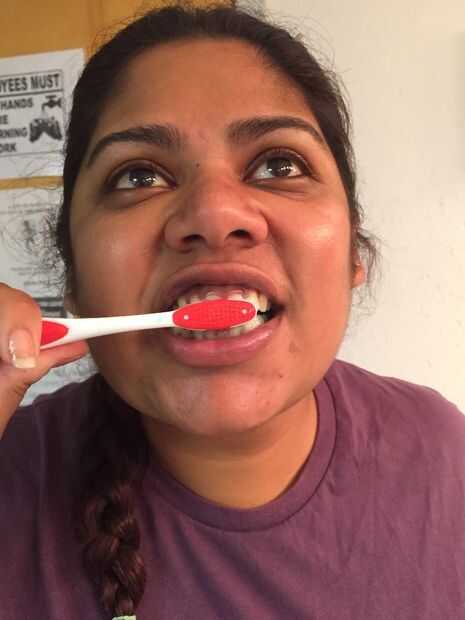 Tengo problemas con mi niño al enseñarle a cuidar de sus dientes. Después del cepillado, ella siempre lo deja en la encimera del fregadero o en el vidrio o el peor, la soltó en el piso del baño. Que el desorden y puede ensuciar el cepillo de dientes.