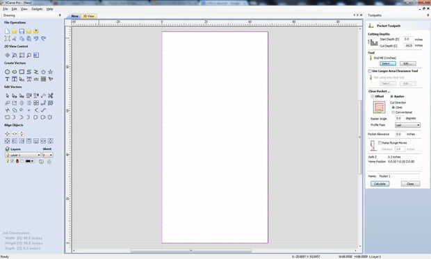 Con su forma de rectángulo seleccionado (resaltado en rosa) elegir "Crear un bolsillo" de las opciones de trayectoria de herramienta.