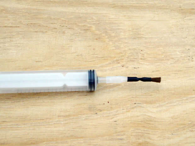 El mismo aplicador se puede utilizar en jeringas cuando son el método de dosificación de la cola de CA. Encogimiento del calor con un diámetro de 4 mm debe utilizarse un cepillo que es para uso con una jeringa. Tengo un instructable utilizando jeringas para almacenamiento de información de pegamento CA y distribución -