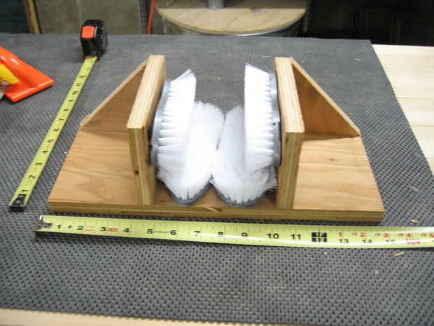 Luego toma un lápiz y marca donde deben fijarse los cepillos. Decidí que los cepillos laterales sólo deben descansar sobre los cepillos de la parte inferior. Luego retire las piezas laterales, soportes y pinceles y marque la ubicación de las escobillas de la parte inferior.