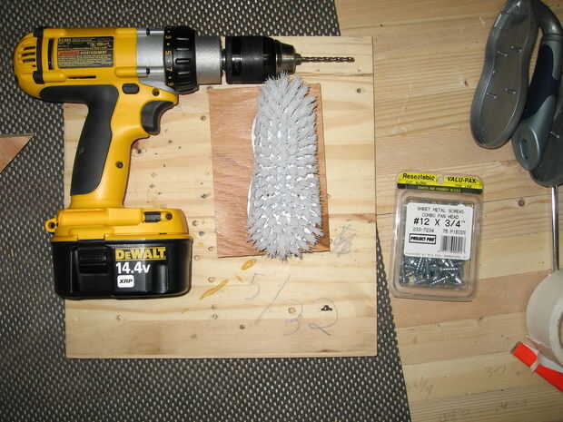 Un Consejo: Taladre un agujero primero y colocar el cepillo a la madera contrachapada con un tornillo antes de perforar los agujeros de otros. Esto hará más fácil alinear las piezas.