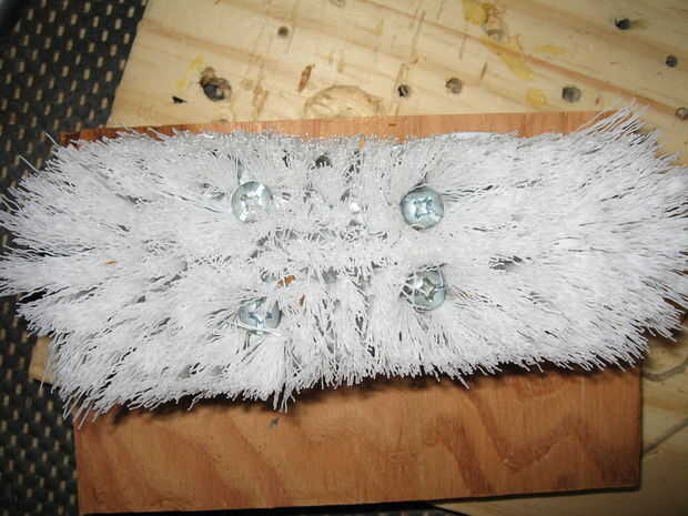 A continuación use los tornillos #12 para sujetar los pinceles a la madera contrachapada.