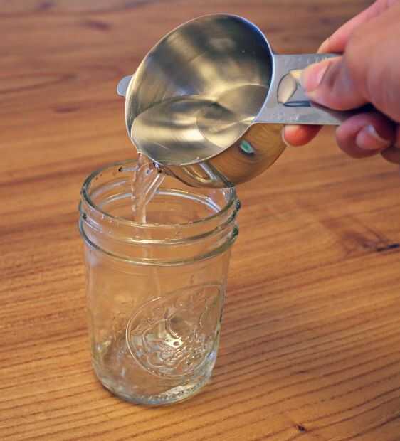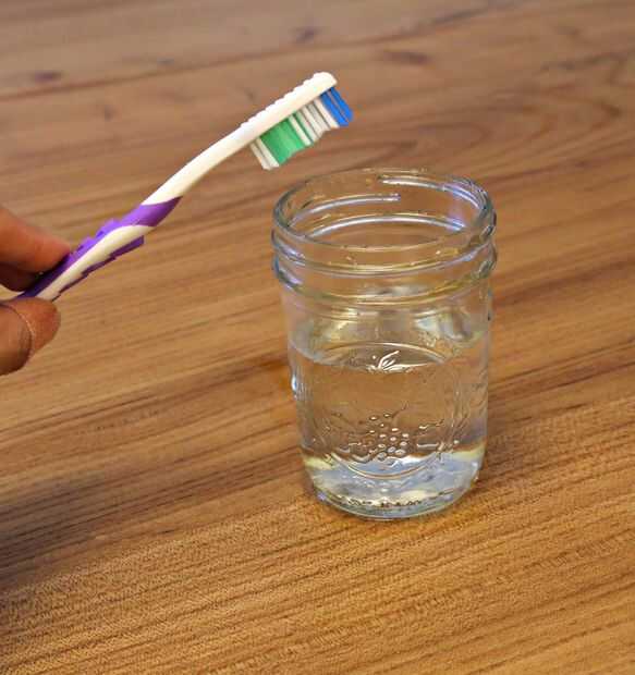 Verter el vinagre en el vaso. Coloque la cabeza del cepillo de dientes hacia abajo en vinagre