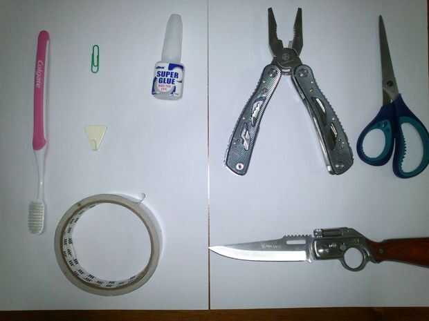 3) scissor - para quitar el plástico cubierta en el pin del clip de papel