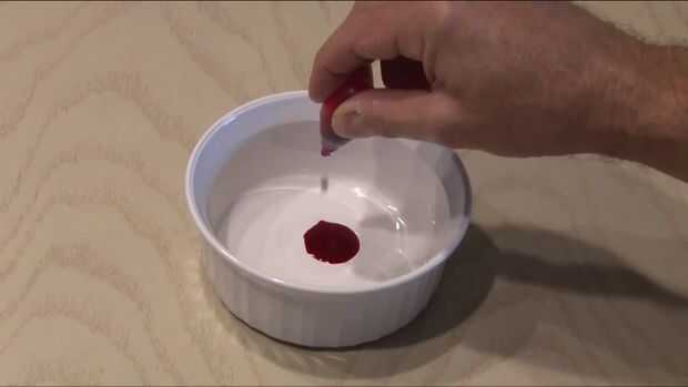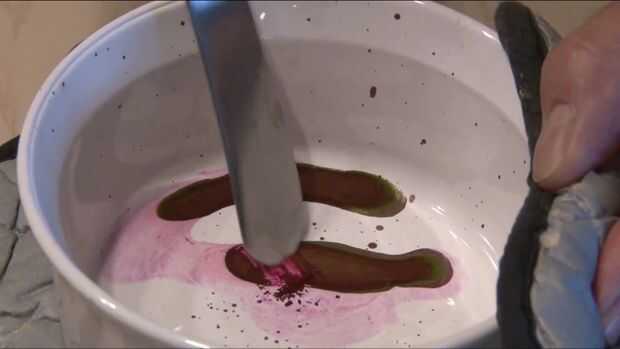 Obtener el colorante rojo y ponerlo en un recipiente seguro de horno y poner en el horno durante unos 25 minutos. Sacarlo y raspar hacia fuera el colorante y poner en una bolsa para guardar.