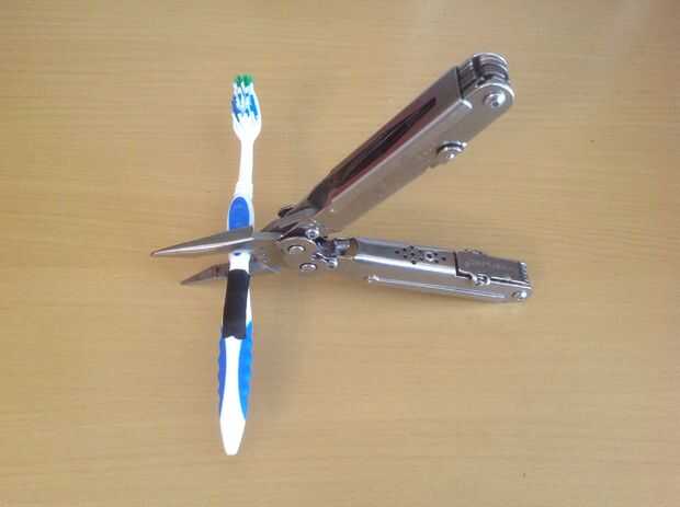 A continuación tomar una multiherramienta y cortar el mango del cepillo de dientes.