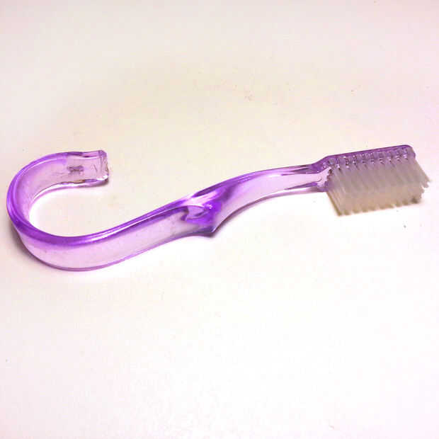 El cepillo de dientes ganchudo funciona bien y es muy divertido de usar. Una queja menor sería que el mango es un poco corto, permitiendo sólo 2-3 de mis dedos para sujetar el mango. Esto no es un gran problema ya que no es incómodo y usted realmente no necesita tener los cuatro dedos en su cepillo de dientes de todos modos.