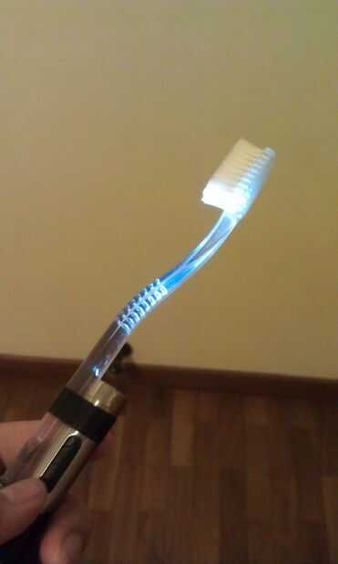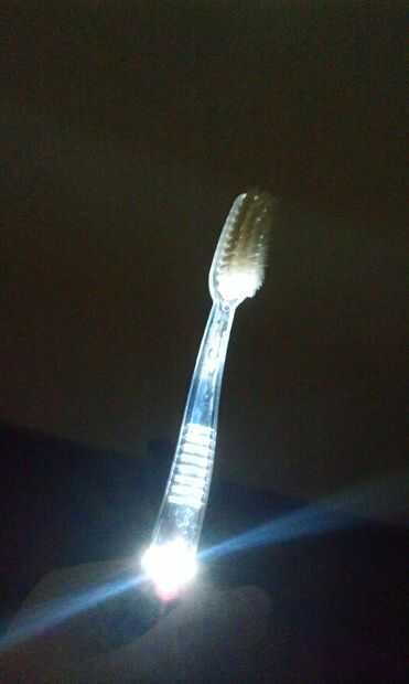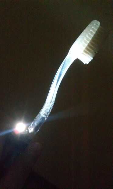 Encender la batería había operado luz sobre el cepillo de dientes e iluminará el mundo a tu alrededor! Incluso viene con un laser para que usted puede señalar cosas a los demás en la oscuridad!