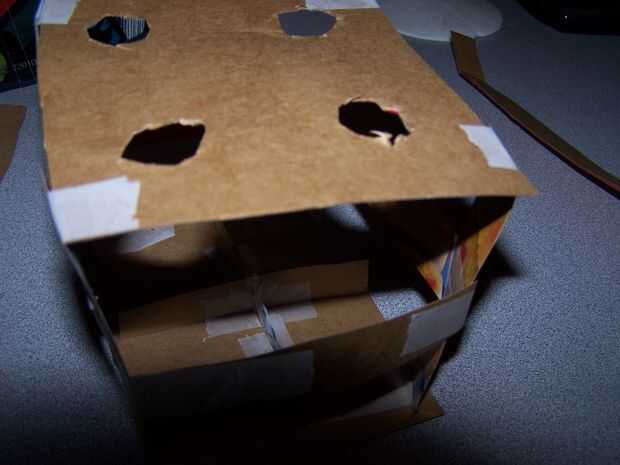 Esta parte es un poco difícil de explicar. Así que es una imagen de más abajo. Echa un vistazo a la imagen y ver y construir lo que es en la imagen. Luego asegúrese de que se puede doblar hacia los lados para que comience a parecerse a una casilla vacía sin una tapa.