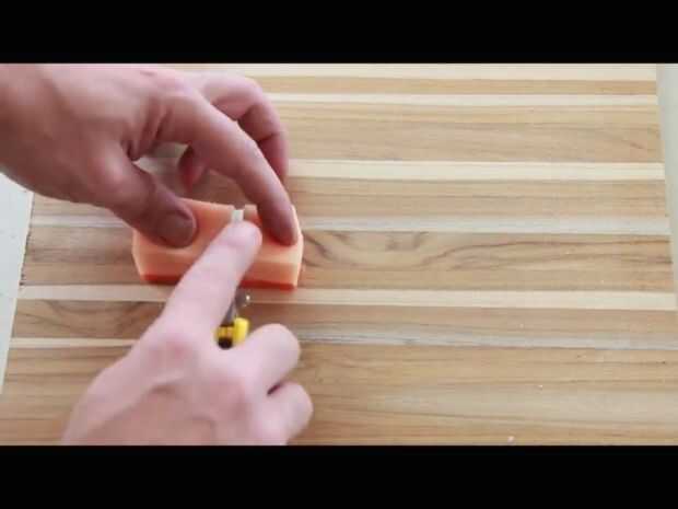 usar cepillos de espuma todo el tiempo para aplicar barniz - son grandes porque son tan baratos y desechables, pero también son un desperdicio enorme. me encontré con alguna espuma gris el otro día, y me decidí a hacer mis propios pinceles con él! ut