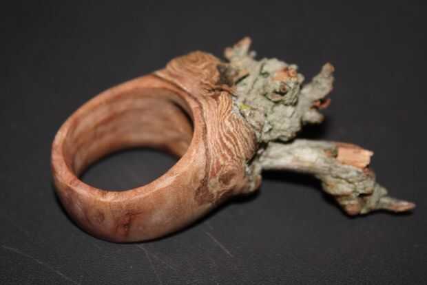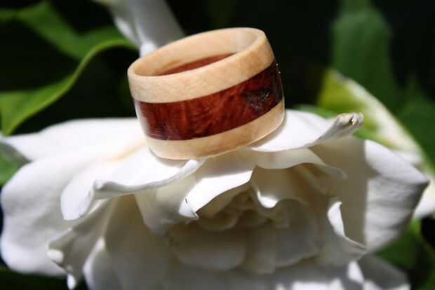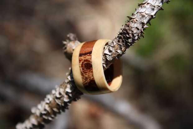 Por qué es especial la burl. Burl bien es una de la más hermosa madera que normalmente vas a tener en sus manos. Los patrones irregulares de la madera crean efecto dramático con figura y coloración que mayoría de la gente encontrar preciosa (me incluyo). He incluido unas fotos de unos anillos que hice en burl y fotos de los cortes que hice mostrando la madera para que tengas una idea.