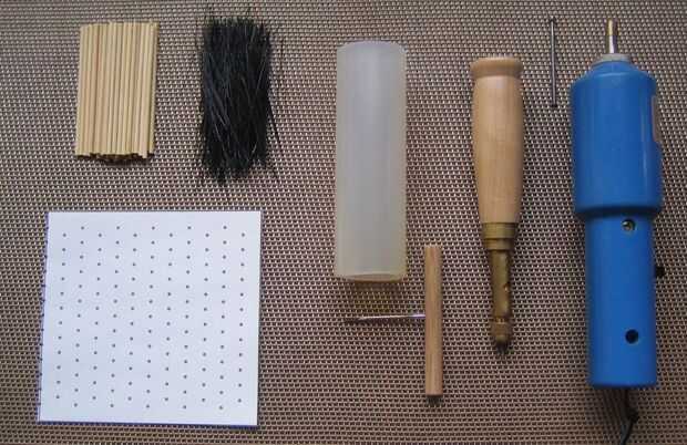 Las cosas se necesitarán para hacer la parte del cepillo es finas tiras de bambú, las cerdas de jabalí, un tubo amortiguador, un golpe de tornillo, un router de mano, un jig tufting a mano y así sucesivamente.