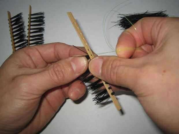 Penachos de cerdas a mano es la forma tradicional que se ve raramente hoy en día. Acota las cerdas de jabalí solita.