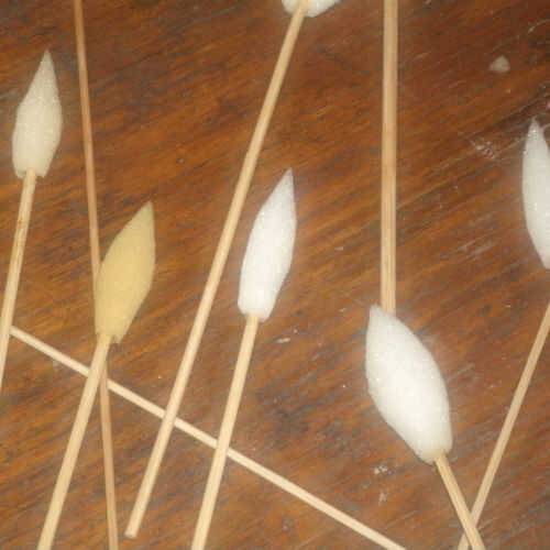 Los pinceles de textura han tenido su superficie descuartizado por el desplume hacia fuera de piezas de espuma con unos alicates o unas pinzas.
