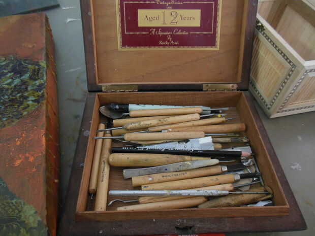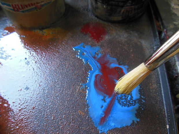 Las pinturas se mezclan en la parrilla precalentada al igual que una paleta normal, la bocina y el regulador de temperatura y varias herramientas de talla se utilizan en encáustica, todo lo que conseguirá el trabajo hecho pintura.