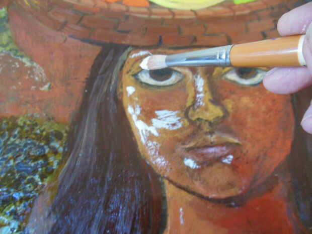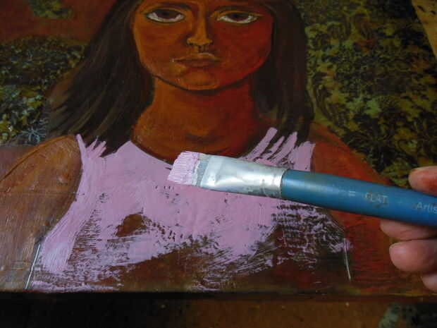 Mantener en la pintura y la fusión hasta que el retrato toma forma.
