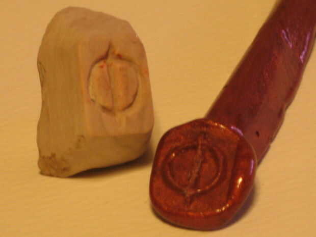 También derretido la parte inferior de la vara de cera e impresionado mi sello de cera sobre él...