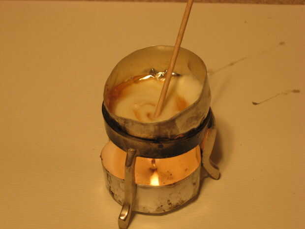 Si la cera burbujas o aparece en cualquier momento de este procedimiento, está demasiado caliente! Tomar distancia de la llama durante un minuto.