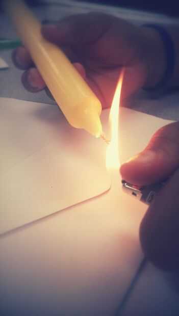 luz de la cera. Una vez la cera ha comenzado el goteo, goteo cera en forma circular sobre la lengüeta de la envolvente.