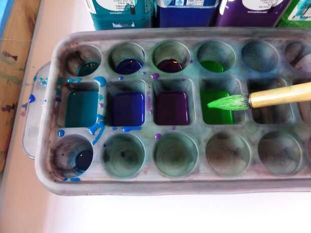 Estoy mezclando algunas diluido "prado verde" en la seda para cubrir las marcas de cera hechas.