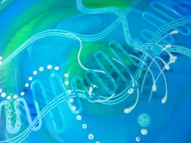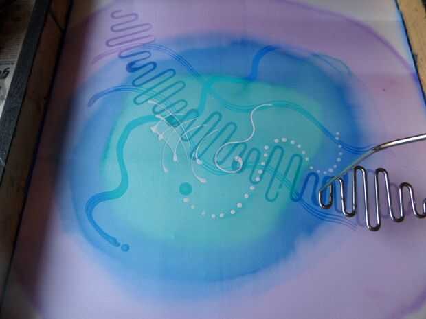 La cera protege los colores debajo, permitiéndome captar más colores con más cera a medida que avanzamos a lo largo.