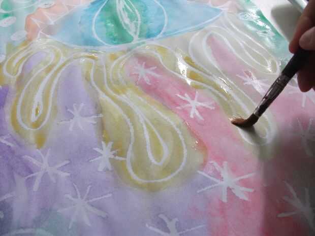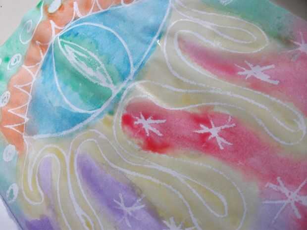 En vez de hacer velas pensé que sería más interesante hacer algo más con cera! Así que ¿por qué no dibujaba con una vela? Me di cuenta de que la cera es impermeable, así que decidí dibujar algo con una vela (utilizándolo como un "lápiz") y luego pintar sobre ella con pintura diluida. Mi dibujo entonces apareció por arte de magia de todos :)