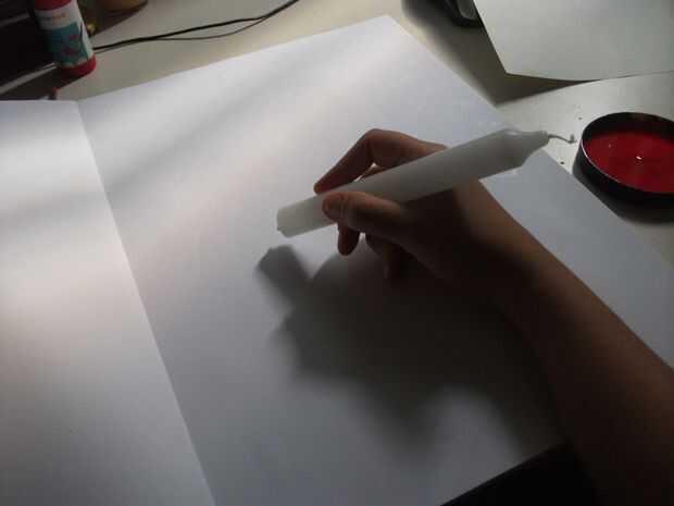 Tome un papel y dibujar lo que quieras en él con la vela. Es un poco difícil ver lo que está dibujando... así que es mejor saber de antemano lo que se desea dibujar. También Recuerde que usted no puede borrar...