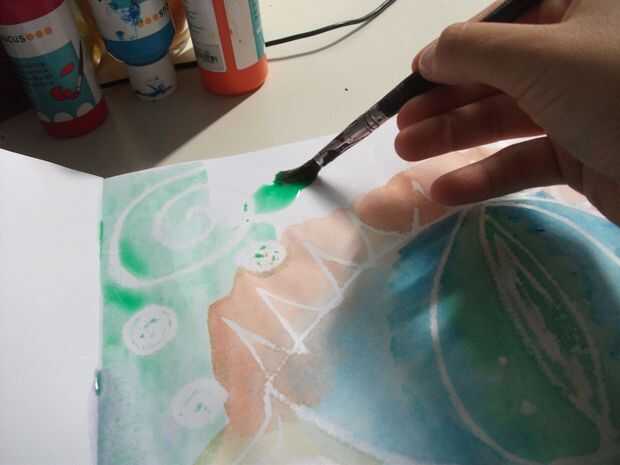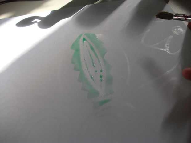 Ahora, usted puede empezar a pintar. Tenga cuidado con las mezclas que has hecho porque si están muy acuosas empapará el papel. Así, una capa de pintura y cuando ésta esté seco, pintar otro. Las más capas más colorido será la pintura, al igual que cuando la pintura con acuarela.