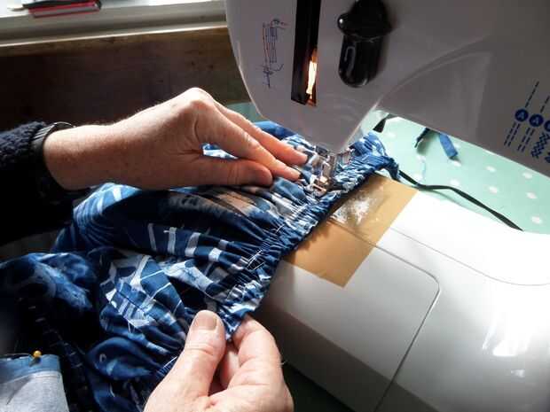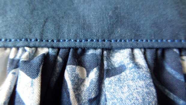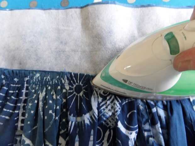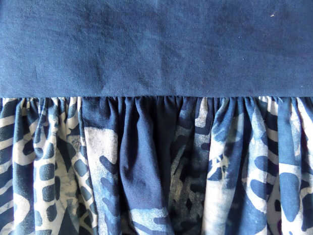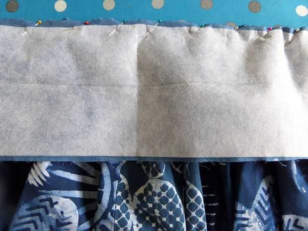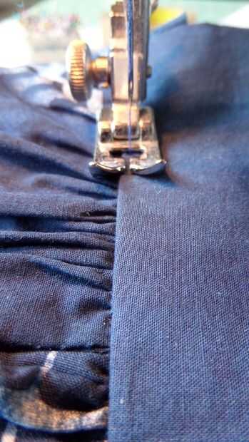 Esto había clavado en la parte superior de la falda, haciendo ajustes en el tamaño de la pretina, derecho lados juntos y cosidos.