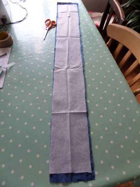 Me acaba de pasar a tener un pedazo de tela indigo la longitud correcta de la cintura, mide 48" de largo y encontró algunos antiguos interfaces al hierro en el interior de la pretina.