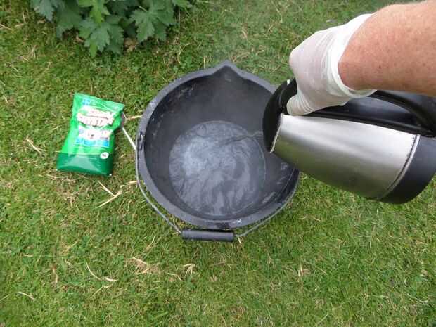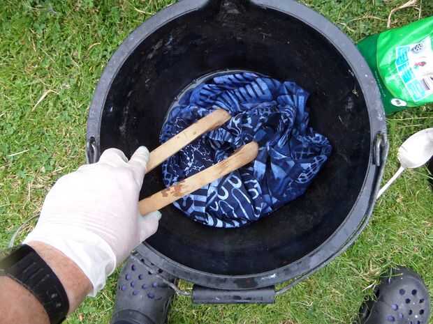 He encontrado que algunas calderas de ebullición y agregar una cucharada de cristales de soda y un chorro de líquido de hadas, la cera salió muy fácilmente con un buen poco de agitación con las pinzas de madera. Él ayudó a que mi tejido estaba en cuadrados pequeños y fáciles de manejar en un cubo.