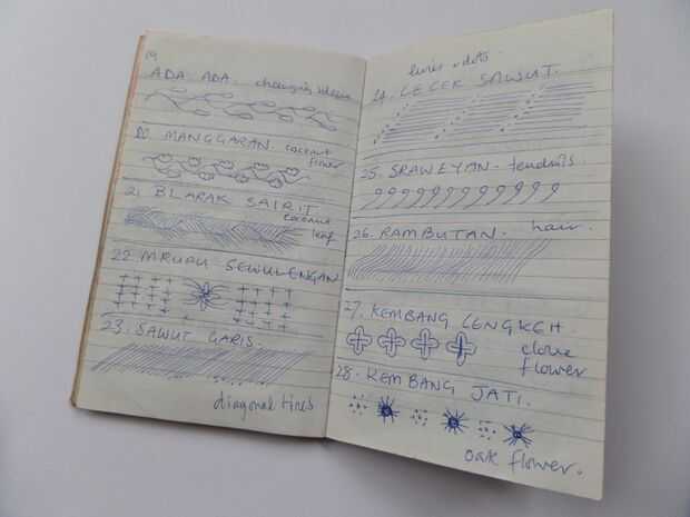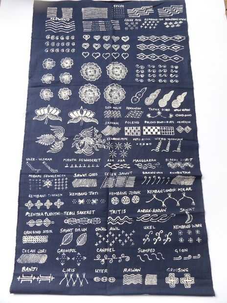 Esta es la muestra produje de Indonesia motivos usando la cera de algodón con un tjanting tradicional mientras que en un curso de batik en Yogyakarta, 20 años o hace. Por casualidad uno de los tutores mostraron un ejemplo de tejido que muestran estos diseños y me sentí intrigado por estas marcas de cera pequeña ya pronto abrieron un idioma visual dentro del mundo de las telas Batik.