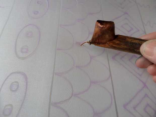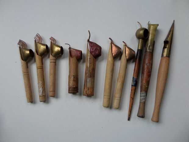 Tengo una colección de diferentes tjantings, pero éste consiguió el trabajo para dibujar líneas rectas en la seda y para la elaboración de los motivos. El tjanting permite líneas finas que se elaborará con el uso de un pequeño Caño cobre conectado a un recipiente de cobre y mango de madera. Vienen en muchas variaciones, algunos con varios caños.