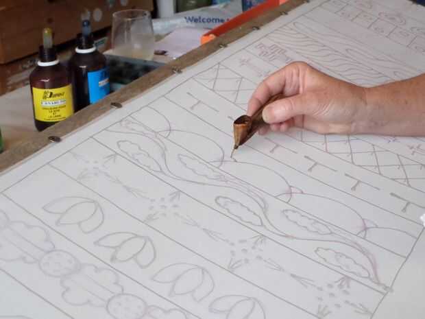 He estado trabajando con cera como un medio para decorar a tela desde la escuela de arte, hace ahora unos 30 años! Mi interés me ha llevado a estudiar en Indonesia y compartirlo es mágica con muchos estudiantes en talleres aquí en el Reino Unido.Gust